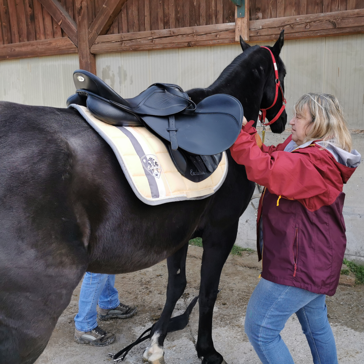 Foto 4: Sattelanprobe. Einer der ca. 3000 Sattelanproben in meiner 45-jährigen Karriere als Sattlerin und Sattlermeisterin.